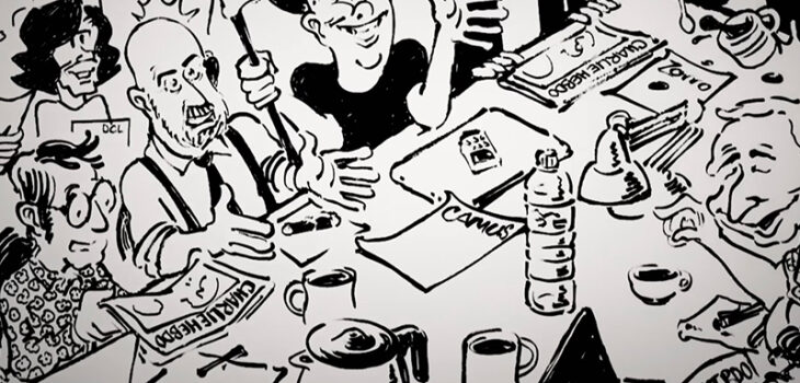 Dix ans après l’attentat du 7 janvier, dans un immeuble anonyme, derrière des portes blindées, la rédaction de Charlie Hebdo se réunit chaque mercredi, pour préparer le prochain numéro du journal. Quatre mois durant, les réalisateurs Jérôme Lambert et Philippe Picard ont suivi les conférences de rédaction : autour de la table les blagues fusent, une vraie cour de récré… Ces échanges drôles, parfois dramatiques, sont croqués par le dessinateur Juin pour nous les restituer dans le pur style Charlie, tandis que plusieurs générations de journalistes et de dessinateurs confient leur détermination à faire vivre ce journal envers et contre tout.